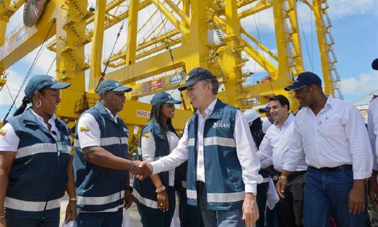 Así lo recalcó el Presidente Juan Manuel Santos al término de su visita de este jueves al Puerto de Buenaventura, donde puso en funcionamiento los equipos de escáneres, cuatro grúas y un muelle, que dinamizarán las importaciones y exportaciones portuarias del país.