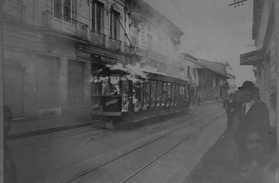 El primer tranvía que recorrió las calles de la ciudad era halado por mulas, e inició su operación el 24 de diciembre de 1884.