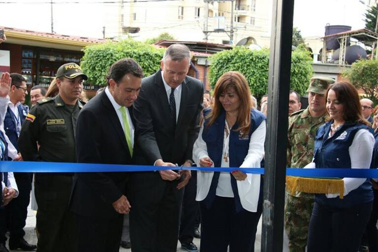 El Defensor Nacional del Pueblo Alfonso Cajiao corto la cinta de inauguración de la nueva sede