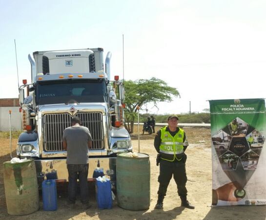 Indicó el comandante que en un primer operativo en el sector conocido como El Ebanal de la vía Riohacha Santa Marta, donde la Policía Fiscal y Aduanera mediante puesto de control logran incautar 120 galones de gasolina venezolana que eran transportada en un vehículo tipo tracto mula color negro con blanco, cuyo conductor no presentó ningún tipo de documentación que acreditara la legalidad del combustible, por lo cual fue capturado y luego puesto a disposición de la Unidad de Reacción Inmediata (URI) de la Fiscalía Riohacha por el delito de favorecimiento al contrabando de hidrocarburos y sus derivados.
