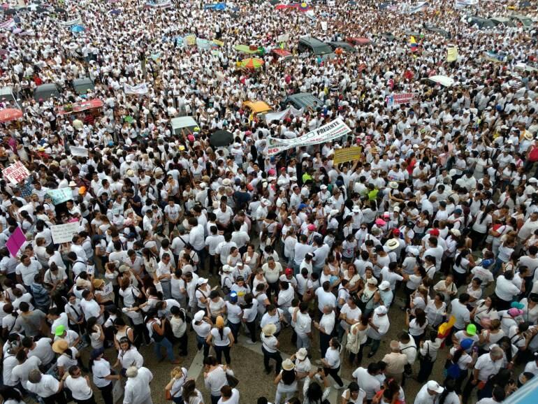 A las 3:00 de la tarde del miércoles no cabía una persona más en la Plaza de la Paz, frente a la catedral María Reina de Barranquilla, todos llegaron en respuesta a la convocatoria de las redes sociales que promovían rechazo a una supuesta imposición de ideología de género a través de los manuales de convivencia.