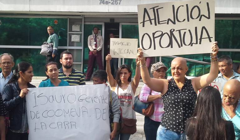 Un grupo de casi 30 mujeres que padecen cáncer y son afiliadas o beneficiarias de la Eps Coomeva, en Medellín, acudieron a un plantón y a las manifestaciones en la vía pública para denunciar la suspensión los tratamientos de quimioterapia, radioterapia y algunas cirugías que tienen pendientes, porque la prestadora de salud no ha cancelado sus deudas con las clínicas y hospitales.