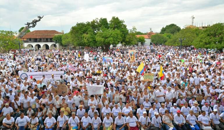 La convocatoria de las iglesias, docentes, padres de familia y sociedad civil en general, tuvo amplio respaldo, si se toma como medida la tradición de que si la plaza Alfonso López se llena más allá del palo del mango, fue exitosa.