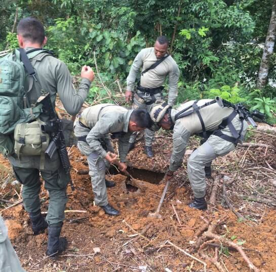 El general Jorge Hernando Nieto, director Nacional de la Policía, confirmó que cien comandos jungla de la Policía, apoyados por la Fuerza Aérea desembarcaron en la vereda Vallenato, corregimiento de Llorente. Y un grupo de sus policías se dirigió hacia un megalaboratorio donde encontraron cocinas, hornos, químicos y otros elementos utilizados para el proceso de oxidación.