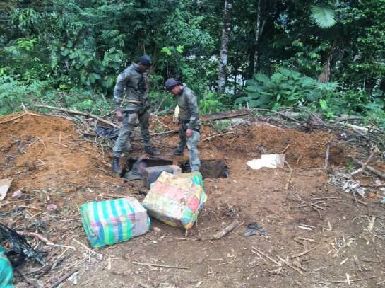 Iban por cinco laboratorios de droga ubicados en el corregimiento de Llorente, Nariño, en una zona boscosa entre los ríos Mira y Güisa en Tumaco, Nariño, pero terminaron tropezándose con cinco toneladas de cocaína que permanecían ocultas en una cochera de marranos para desviar la atención de las autoridades.