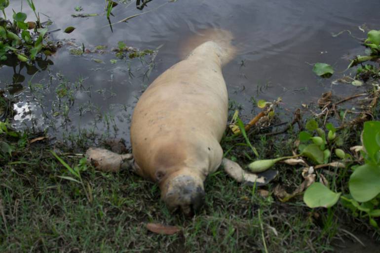 Este mamífero fue encontrado muerte en una ciénaga que está contaminada por vertimiento de aguas negras.