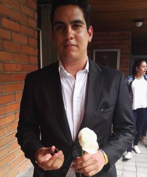 Tras unos segundos de silencio el opositor de los acuerdos aceptó la rosa por respeto a los estudiantes, pero no tardó con ella en las manos más de 10 segundos y la devolvió a la primera mujer que vio en la fila.