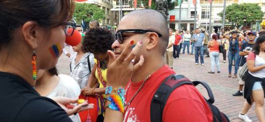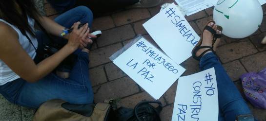 En la Plaza de Bolívar, con pancartas y las caras pintadas, decenas de pereiranos se reunieron para ver la transmisión del anuncio del acuerdo final.