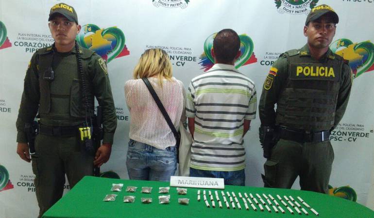 En el barrio San José, la patrulla del cuadrante 2 capturó a un hombre de 35 y una mujer de 36 años de edad, que portaban 10 bolsas de marihuana tipo cripa y 50 cigarrillos de marihuana.