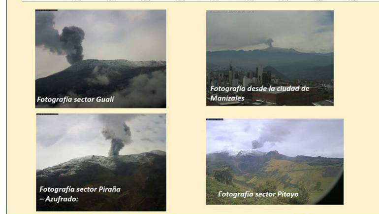 No se descarta la caída de ceniza en las poblaciones que se encuentren en la dirección del régimen del viento, principalmente hacia el Noroccidente (NW) del volcán, tales como Manizales, Villamaría, Chinchiná y poblaciones aledañas.