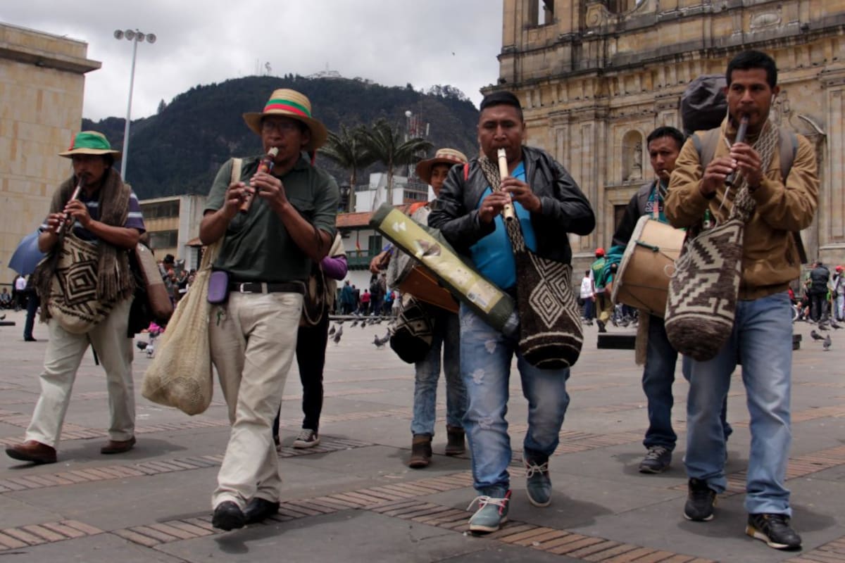 Movilizaciones de indígenas y maestros de ASOINCA llegan a la plaza de Bolívar