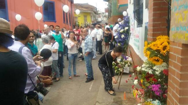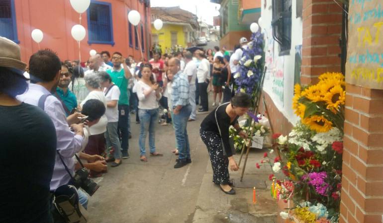 Numerosos habitantes de los barrios San Antonio y el Peñón se reunieron esta mañana en el lugar en donde un delincuente asesinó de tres impactos de bala al parapentista Juan Manuel Alzate, cuando éste trataba de impedir que lo robaran nuevamente.