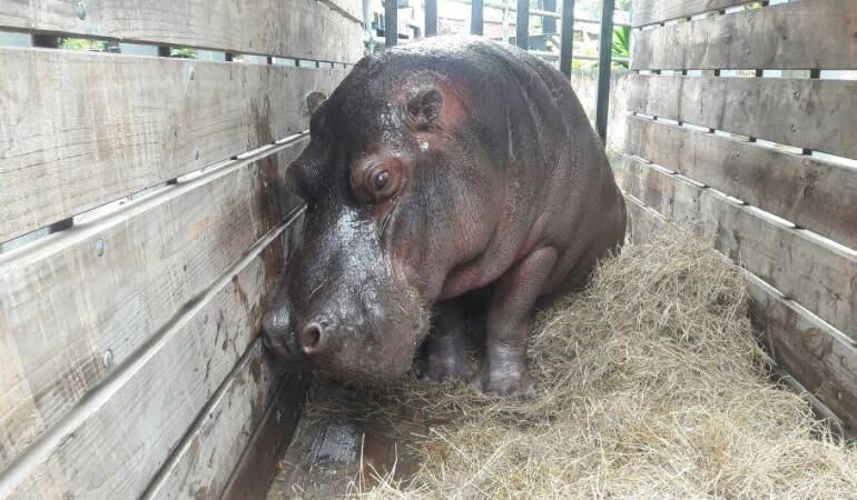 Fueron trasladados los hipopótamos al nuevo parque Ukumarí, las dos hembras que faltaban ya están en su nuevo hábitat, la operación Arca de Noé va en un 90%.