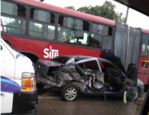 Según información de las autoridades, por el impacto, el vehículo particular golpeó un bus de Transmilenio quedando en el carril exclusivo del Sistema.