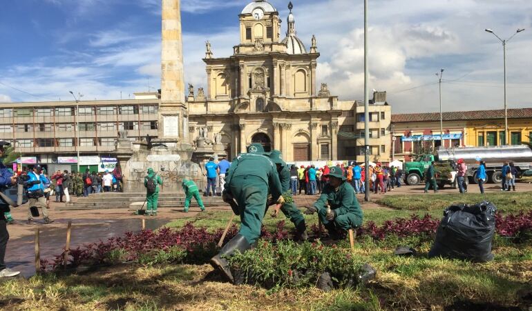 El Instituto Distrital de Patrimonio Cultural, IDPC, promueve la iniciativa de recuperación simbólica del territorio y su legado patrimonial, en coordinación con distintas entidades de la Alcaldía Mayor de Bogotá, a través de la estrategia Los Mártires Florecen. Uno de los protagonistas de la jornada fueron ex habitantes de calle rehabilitados quienes ayudaron a sembrar árboles y acondicionar los jardines.