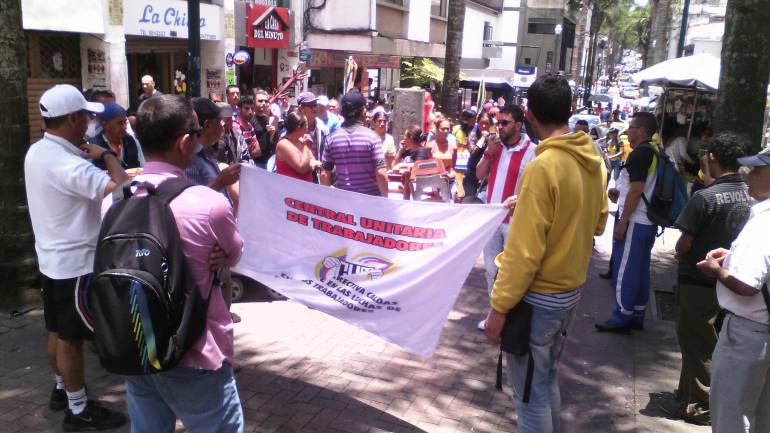 Óscar Arturo Orozco, líder sindical en Caldas y quién lidera las protestas, aseguró que esta concentración se origina en amenazas que los funcionarios del Espacio Público les hicieron a los vendedores ambulantes del Centro Histórico de Manizales.