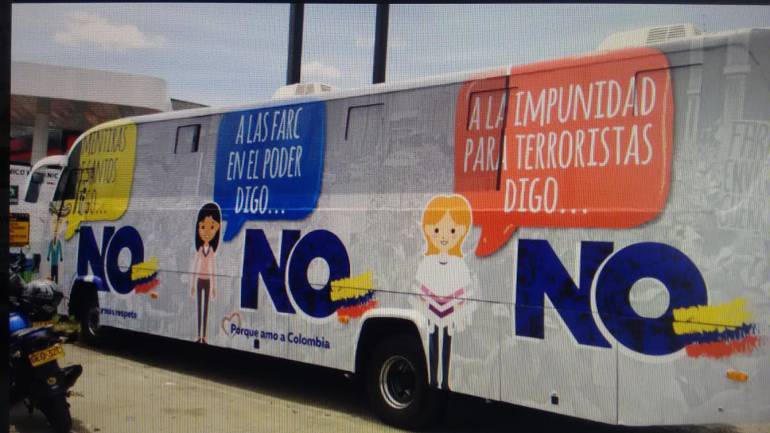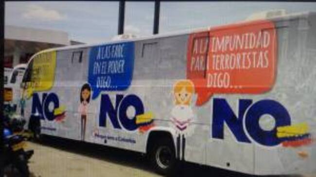 Durante un mes el bus estará haciendo campaña por el no, según explicó Catalina Escobar, una de las personas que hacen parte del colectivo ciudadano que adelanta la iniciativa.