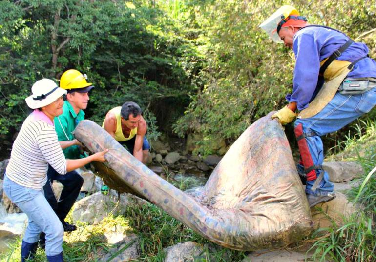 Hasta colchones sacaron del lecho de un río en Santander