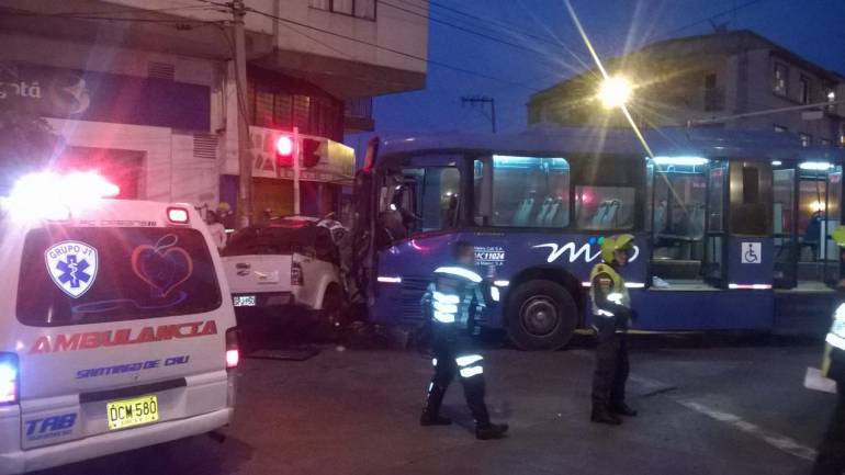 11 heridos en accidente de bus del Mio y camioneta que bloquea corredor de la carrera 15