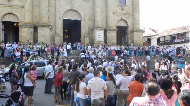 Una multitud de habitantes del Socorro y poblaciones vecinas como Simacota acompañaron las honras fúnebres de Sandra Bernal Díaz, la mujer de 34 años de edad, a quien mataron para robarle el niño que aun no daba a luz.