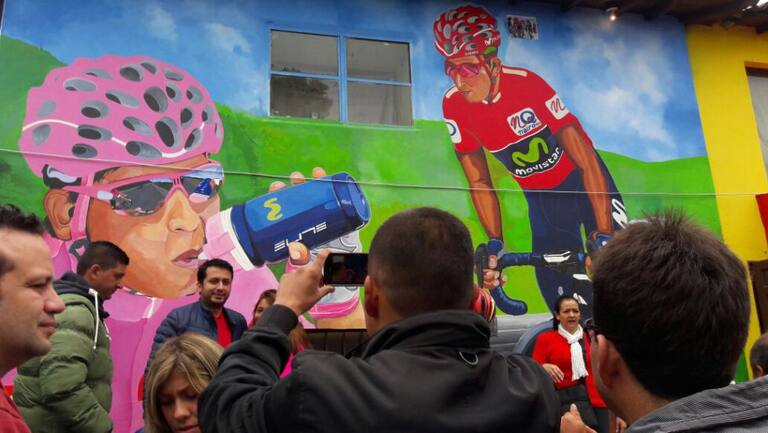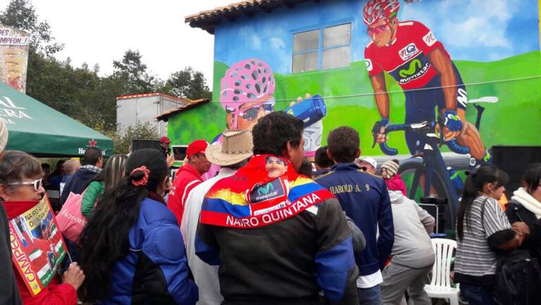 Turistas acompañan el fin de la Vuelta a España 2016 en la casa paterna de Nairo Quintana