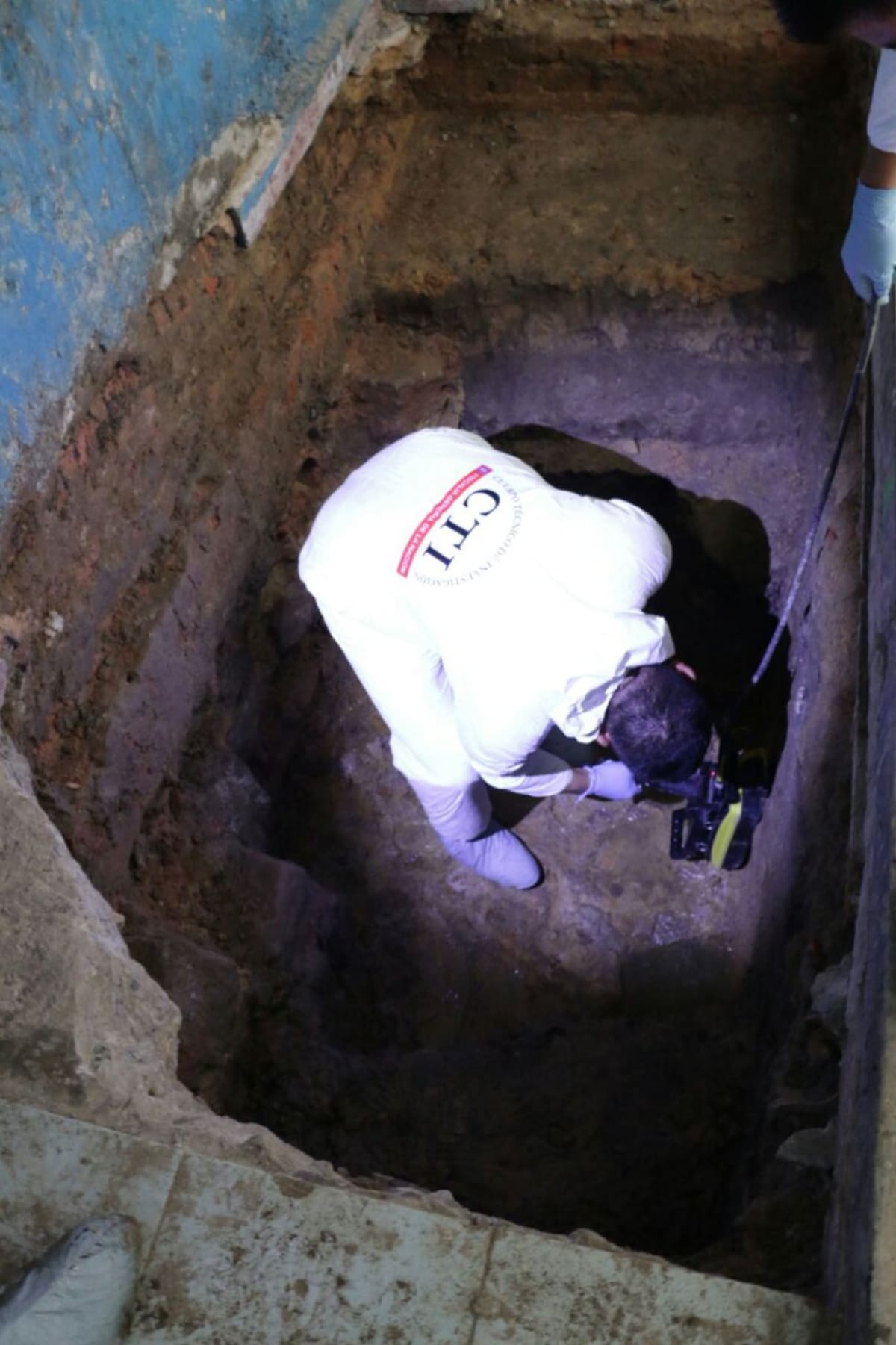Personal del Cuerpo técnico de Investigación adelanta las excavaciones correspondientes para hallar los aparentes restos oseos.