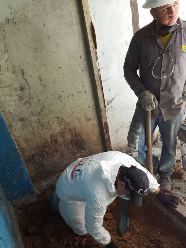 Foto 11 de 13Personal del Cuerpo técnico de Investigación adelanta las excavaciones correspondientes para hallar los aparentes restos oseos.