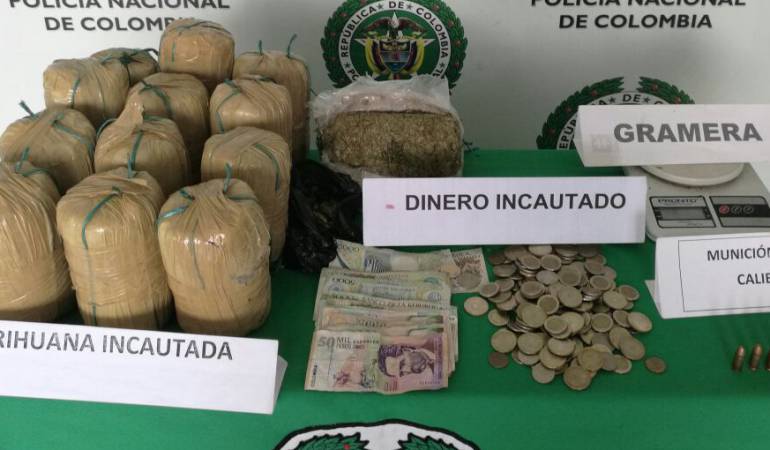 Las capturas fueron realizadas en el barrio El Mirador de Chinchiná donde se logró la incautación de 14 libras de marihuana, 9 cartuchos calibre 9 milímetros y 120 mil pesos en efectivo entre billetes y monedas al parecer producto de la venta del estupefaciente.