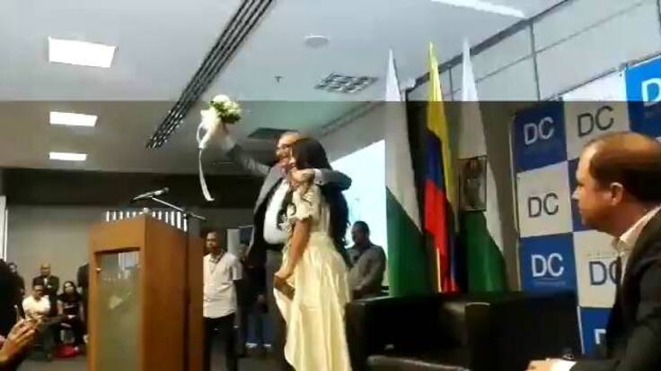 Durante una conferencia en el Centro de convenciones Plaza Mayor sobre la importancia de los diálogos de paz con las Farc, una joven paisa vestida de blanco le pidió al jefe negociador Humberto de la Calle que se casara con la paz.