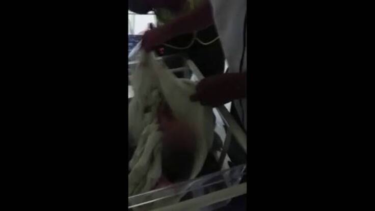 Silena Chiquillo, directora del paso La Manga, dijo a Caracol Radio que el bebé llegó aún en la placenta y su cordón umbilical, con dificultad respiratoria, pero confirmó que se encuentra estable.