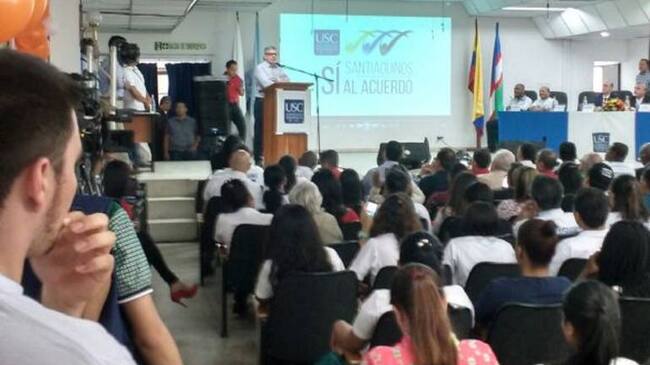 "El me llamó a la OEA y me dijo Presidente Gaviria, necesito su ayuda, porque nadie me quiere colaborar en la desmovilización de los paramilitares. Los europeos, el Departamento de Estado de los Estados Unidos, no me ayudan. Necesito que usted mire si me puede ayudar", relató Gaviria los términos del dialogo que sostuvo con Álvaro Uribe, ante estudiantes de la Universidad Santiago de Cali en donde estuvo dictando una conferencia en respaldo al sí en el plebiscito.