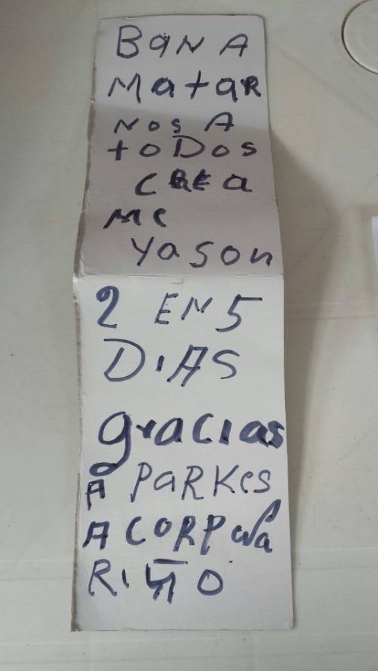 Las evidencias de que los dos osos andinos fueron ultimados quedaron en una bolsa negra ensangrentada que contenía la mano de un oso y un cartón con el mensaje: “Van dos en cinco días, los vamos a acabar a todos¨ aseguró a Caracol Radio Leny Pantoja de la red socio ambiental regional.