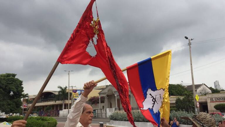 • En la Heroica las personas que no están de acuerdo con el proceso de paz, realizan manifestaciones a pocas horas de la firma final de paz.