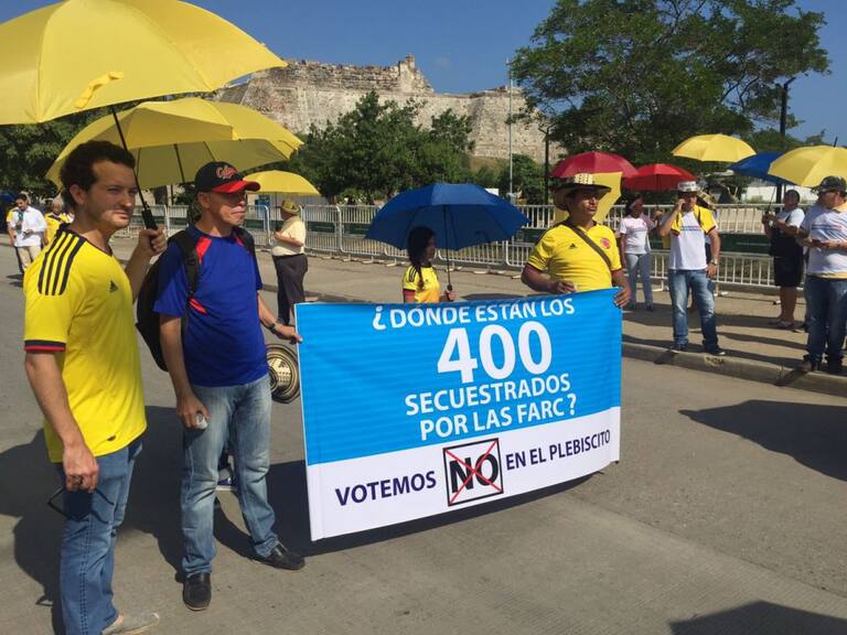 [Fotos] Simpatizantes del No realizan protestas en Cartagena