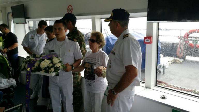 El acto litúrgico se llevó a cabo a bordo del buque ARC “Juanchaco”, que recibió a las familias de estos dos buzos y navegó hasta salir de la bahía de Buenaventura, donde se elevaron plegarias y se ofrecieron unas flores al mar, para orar por los buzos.