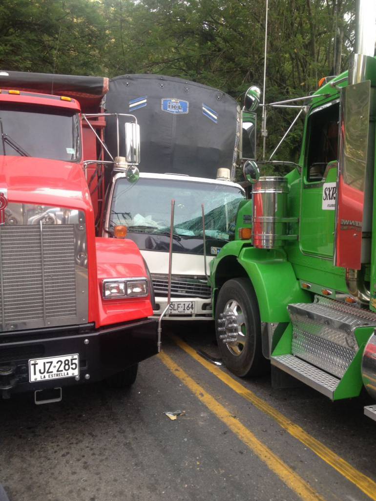 Según el reporte de los organismos de socorro a las 7:00 a.m. una volqueta se quedó sin frenos y cuando transitaba por el sector El Palo se estrelló lateralmente contra un camión Turbo. La tractomula que venía en sentido contrario impacto de frente a la Turbo.