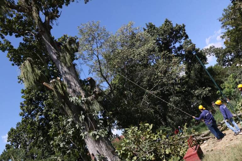 Las autoridades tuvieron que talar un caracolí por problemas fitosanitarios. El árbol estaba plantado en el barrio Paseo del Puente, primera etapa.