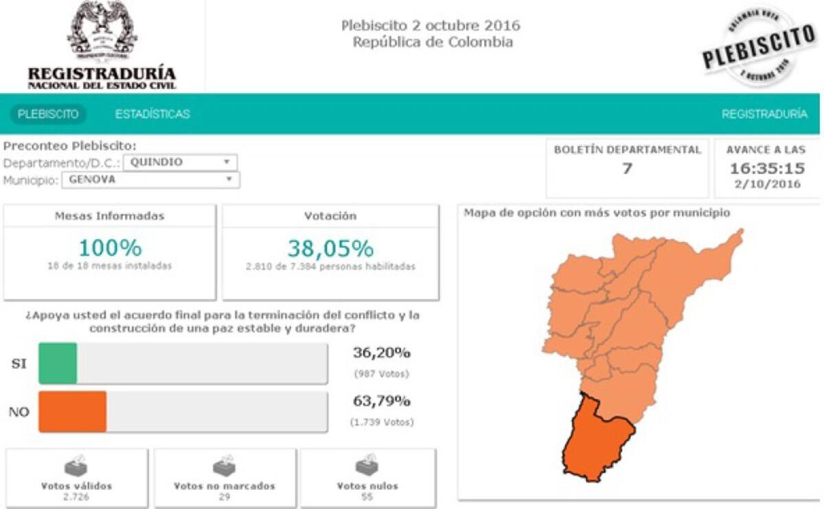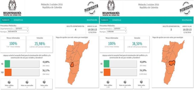 Resultados del Plebiscito en los municipios de Buenavista y Córdoba