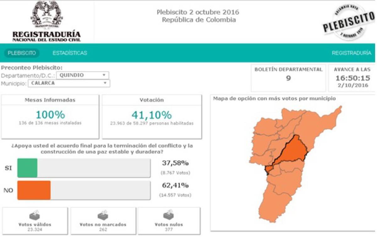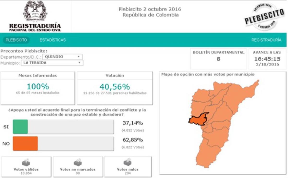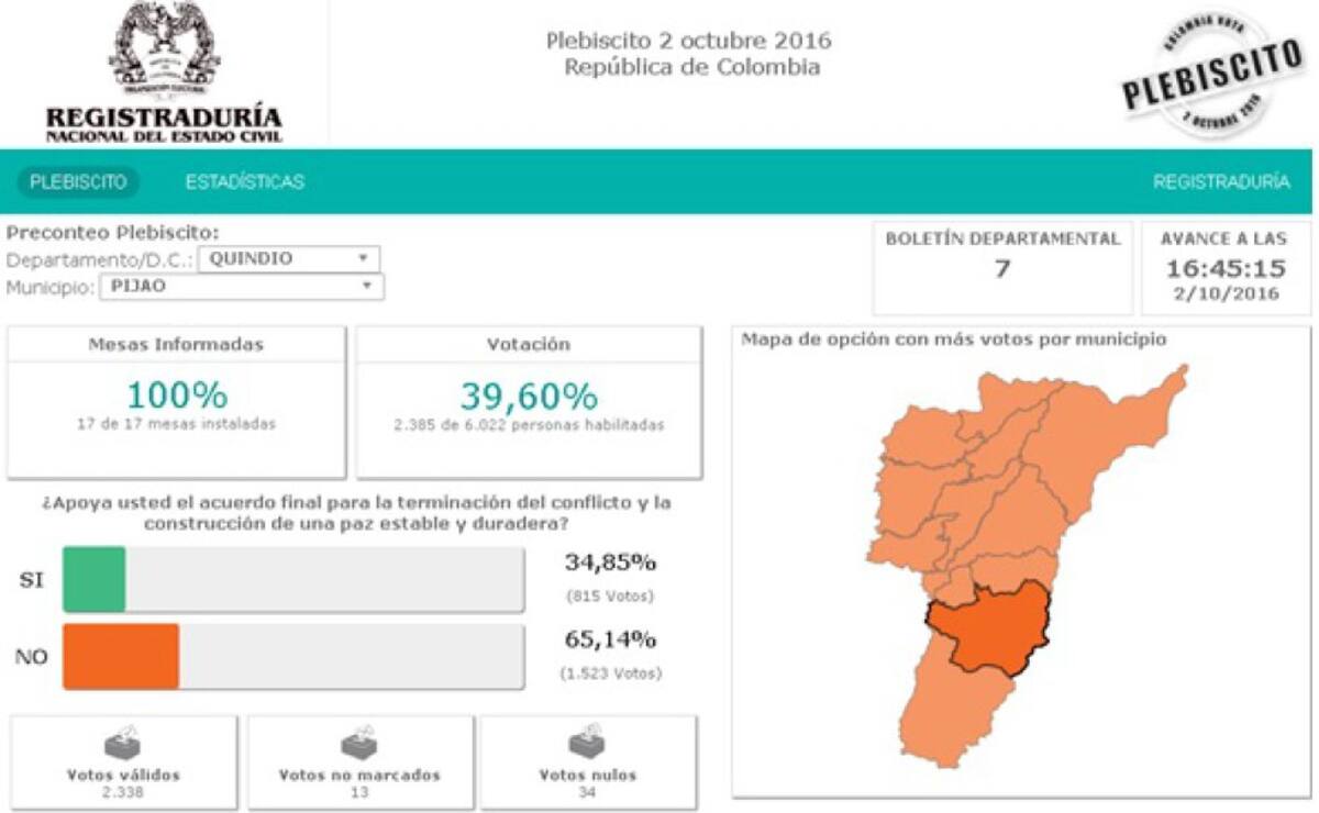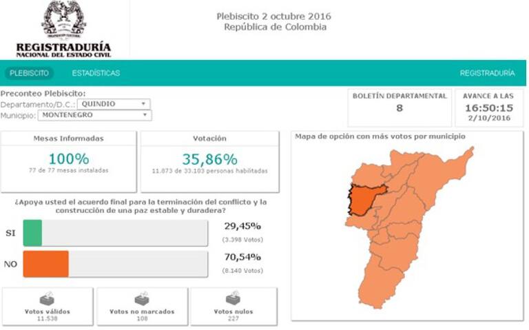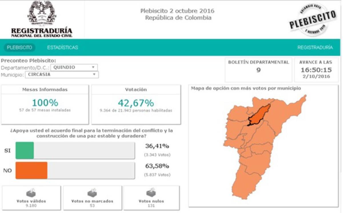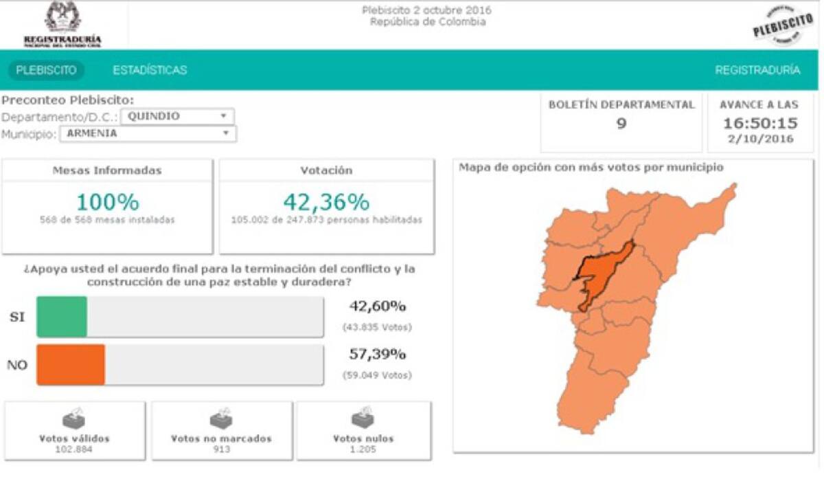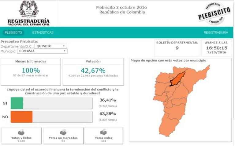 En los 12 municipios del Quindío ganó el No a los acuerdos entre el gobierno y las farc en el plebiscito