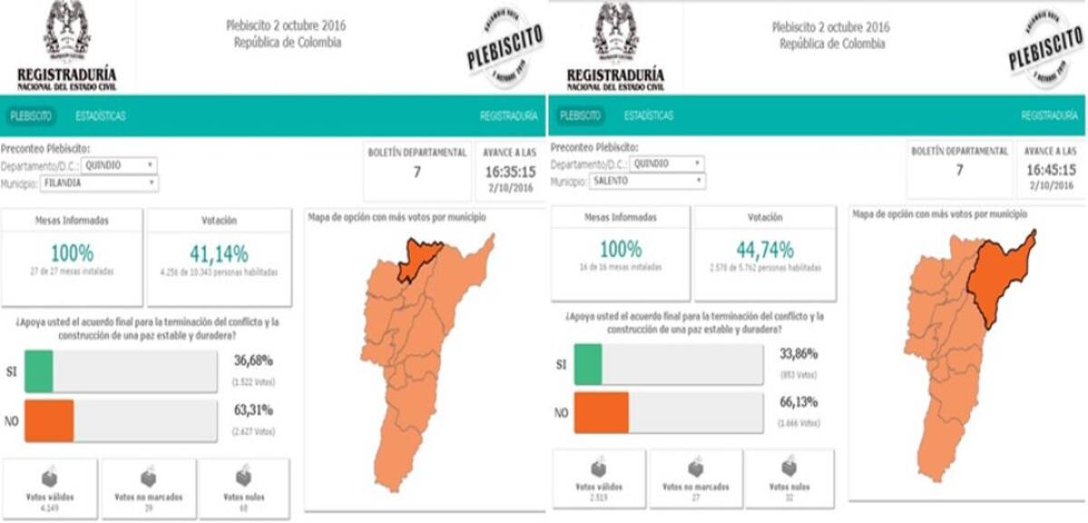 Resultados del Plebiscito en los municipios de Filandia y Salento