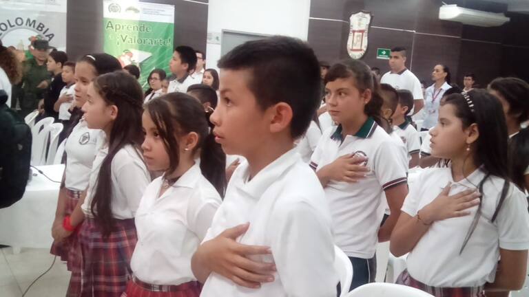 Con amor patrio los niños entonaron los himnos de Colombia, Quindío y Armenia
