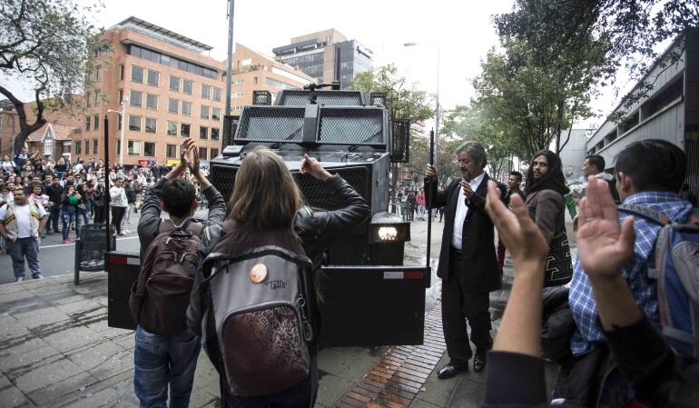 Armados de la convicción de que en Colombia no puede haber más espacio para la violencia, estudiantes, maestros y hasta el rector de la Universidad Pedagógica, Adolfo Atehortúa, salieron este viernes al mediodía a la calle para evitar que una vez más encapuchados se enfrentaran al Esmad, alterando el orden público, el tráfico en ese punto de la ciudad e interrumpiendo las clases.