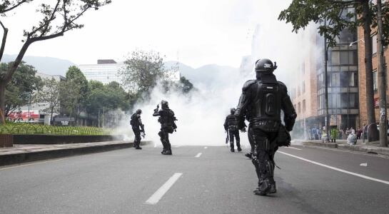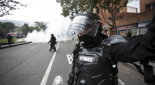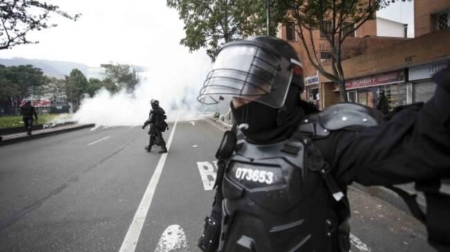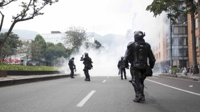 A las primeras papas-bomba lanzadas sobre el mediodía respondieron unidades del Escuadrón Móvil Antidisturbios, que en una reacción casi que automática bloquearon el tráfico vehicular y peatonal para evitar que se produjeran heridos.