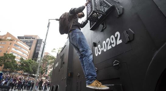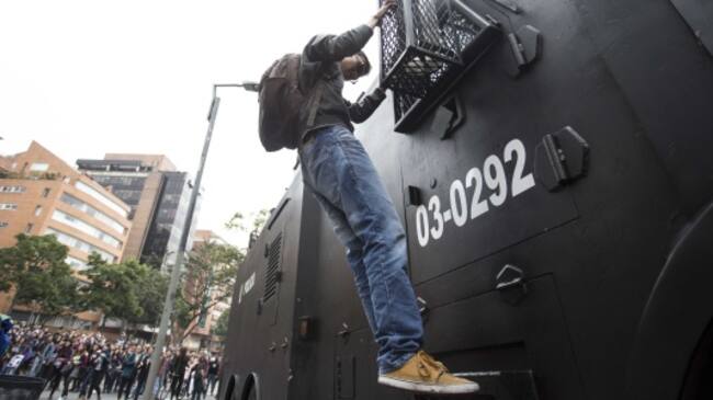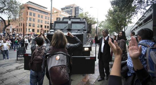 Estudiantes de la Pedagógica evitan choque entre el Esmad y manifestantes
