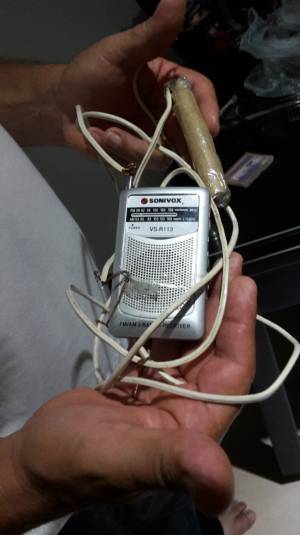 La emisora La Voz del Cinaruco de Caracol Radio siempre fue su compañía en medio de esta dificultad, contó el liberado, mostrando un viejo radio, a la que le improvisó una antena mayor para buscar la señal y un sistema de baterías hechizas para que les duraran más.
