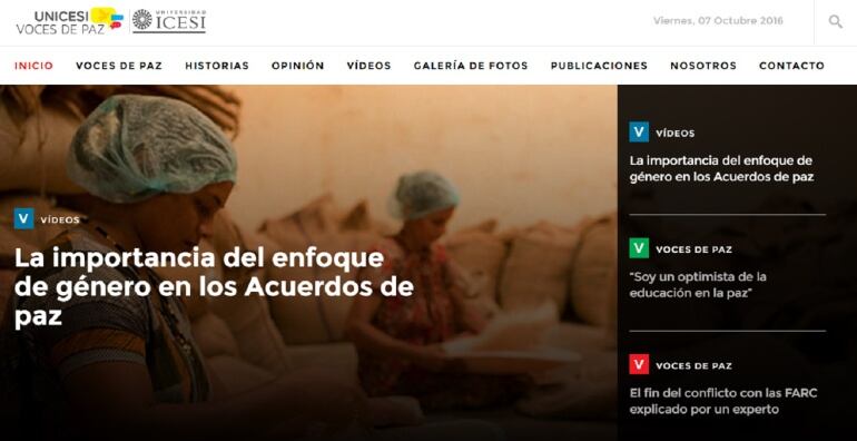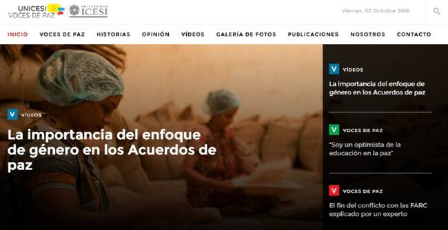 Historias, análisis, videos, fotos, opiniones y encuestas sobre la paz en Colombia son algunos de los contenidos que recoge Unicesi Voces de Paz, un portal web creado por la Oficina de Comunicaciones de la Universidad Icesi.