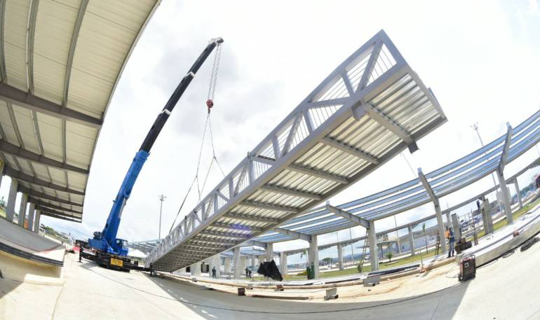 Solo faltan por instalar 100 metros del entramado metálico de accesos y comunicación para usuarios del Patio Portal, del Sistema Integrado Masivo de Transporte, SIMT, que está próximo a entregarse para su operación.