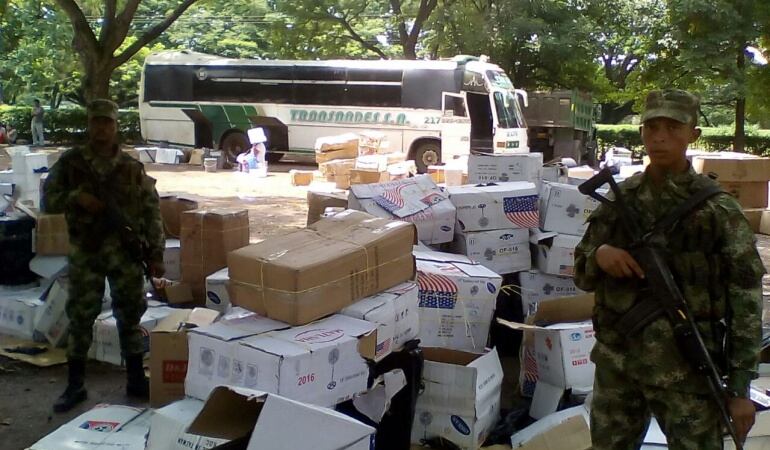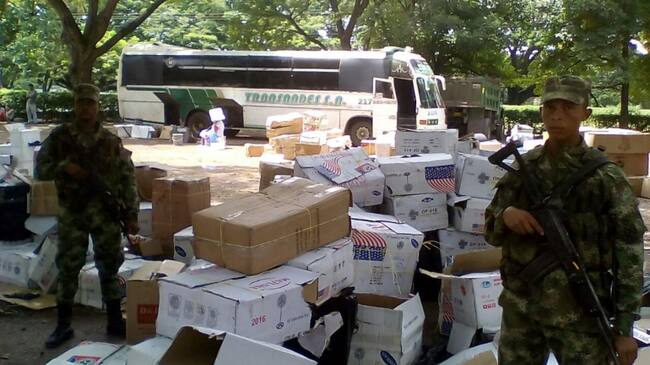 El decomiso fue realizado por tropas del Batallón de Artillería N° 2 “La Popa” en un puesto de control en la vía que del municipio de San Diego conduce hasta Agustín Codazzi, Cesar, donde detuvieron un bus intermunicipal marca Chevrolet modelo 1995, con placa UZA 614 afiliado a la empresa de transporte Transades La Tea S.A. de Bucaramanga, en que viajaban 16 personas.