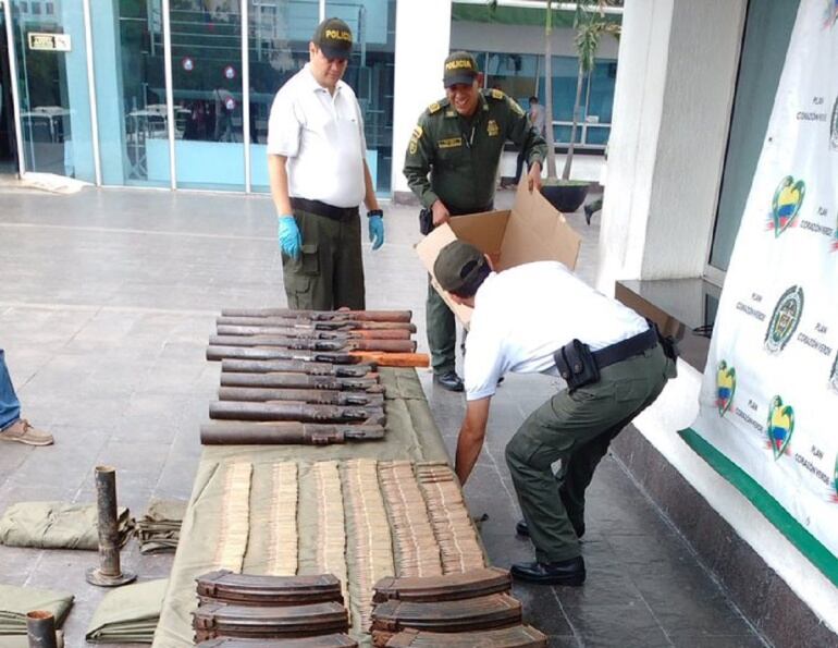 Según la Policía Nacional, no hubo capturas aunque elementos probatorios frente a quienes tenían a su cuidado y resguardo éste arsenal de guerra que pasó a disposición de las autoridades en el centro del Valle.
