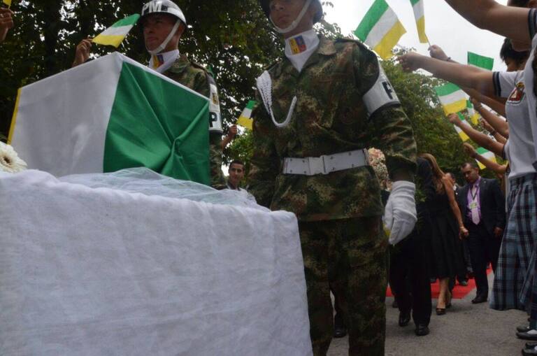 Ejército traslada restos del fundador de Armenia y su esposa al Mausoleo del Parque Los Funddadores
